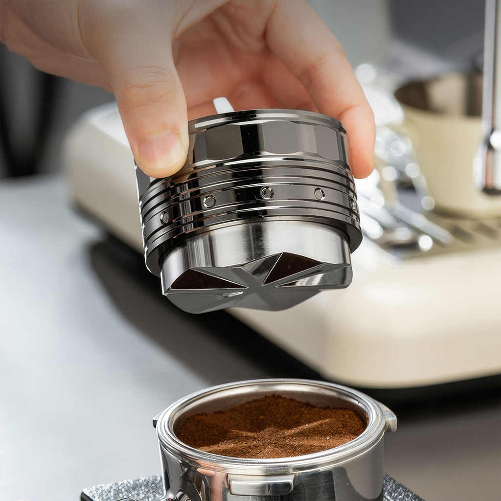 This tool is primarily engineered as a distribution and leveling device. The tornado cyclone base excels at breaking up clumps and creating an even coffee bed before tamping. While its weighted body applies light pressure, we recommend pairing it with a dedicated tamper for full compression. Using both in sequence gives you the most consistent espresso extraction possible.