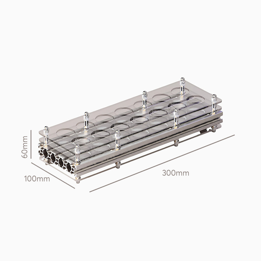 Quality was a priority here. The base and caps are crafted from aluminum alloy, the structural components use 304 stainless steel, and the tubes themselves are made from UV-blocking acrylic. Together these materials deliver durability, corrosion resistance, and light protection. The base weighs approximately 1.87 lbs (850g), giving it solid countertop stability without feeling bulky.