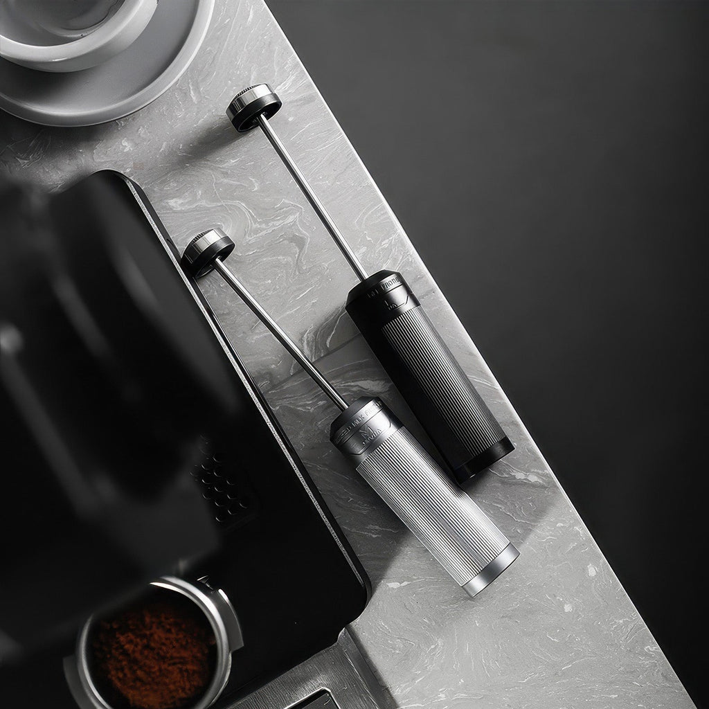 Yes, noticeably so. The built-in impeller design stabilizes the motor during operation, eliminating the rattling and vibration common in cheaper frothers. It runs smoothly at all three speeds, even at the maximum 10,000 RPM. Many customers appreciate being able to froth milk early in the morning without disturbing others. It is not silent, but the noise level stays comfortably low and controlled.
