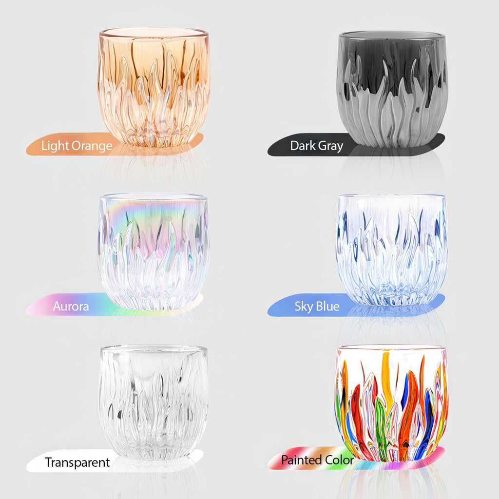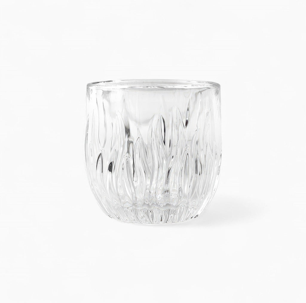 Great question! The flame-inspired crystal cut texture actually serves two practical purposes beyond its striking look. First, the raised ridges create a natural anti-slip grip, so the cup sits securely in your hand. Second, the textured surface adds a thin insulating layer between your fingers and the hot liquid inside, letting you hold the cup comfortably even right after pulling an espresso shot.
