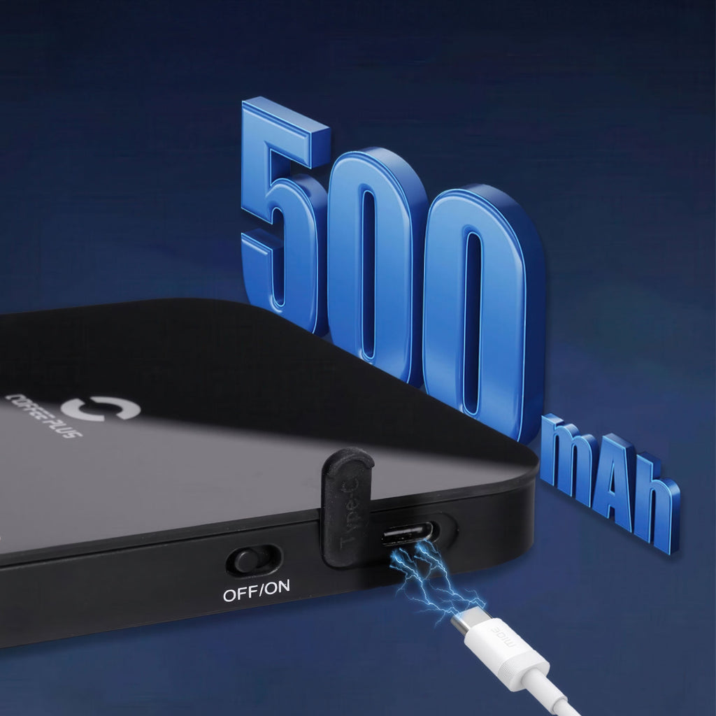 The built-in 500mAh lithium battery provides up to 24 hours of continuous use or roughly 200 brewing sessions on a single charge. Charging is simple with the USB Type-C port, compatible with any standard 5V/1A adapter. Most home baristas find they only need to charge once every few weeks depending on daily usage, so it fits seamlessly into your routine.