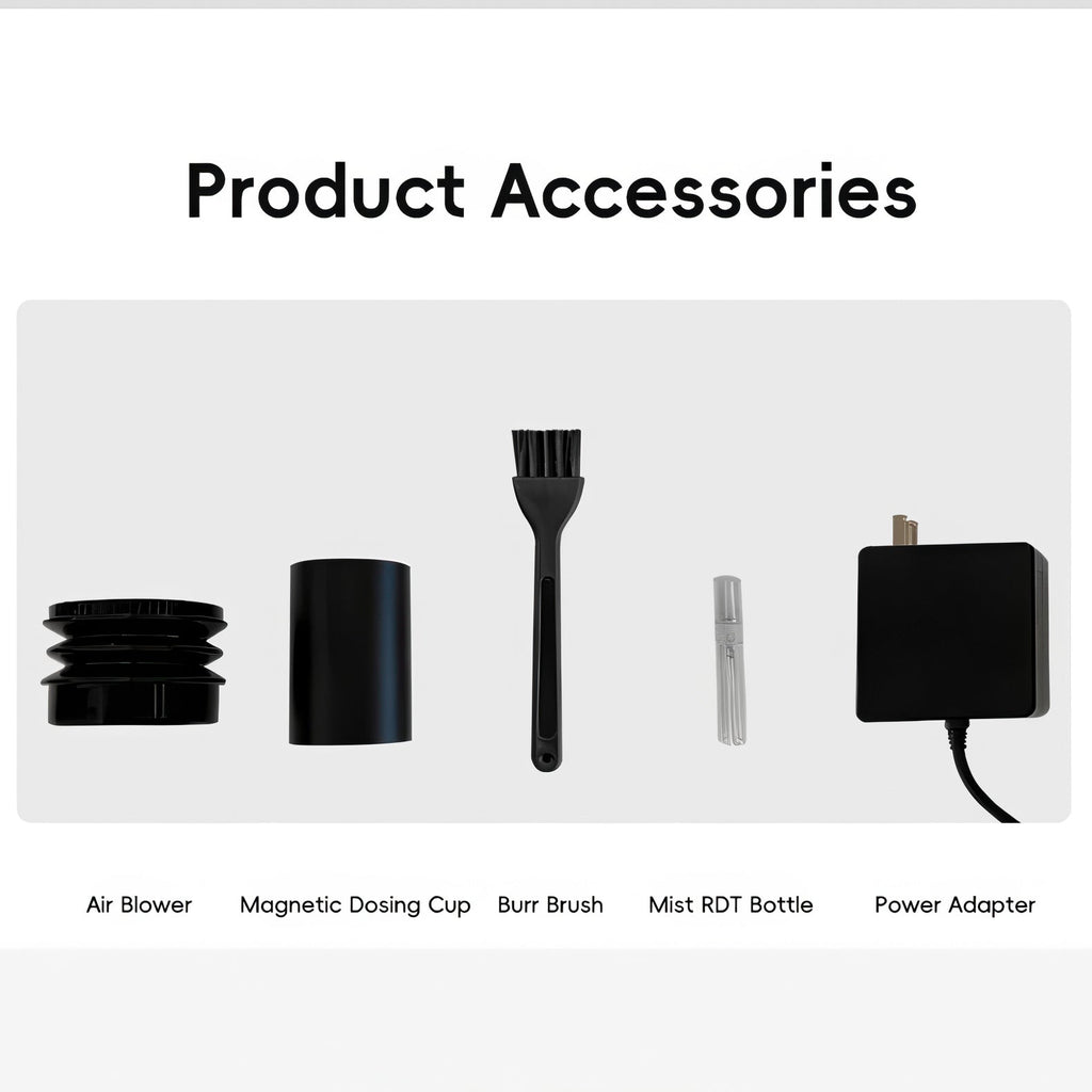 After each session, give the burr chamber a quick brush with a grinder brush to clear residual grounds. Wipe the CNC-machined aluminum body with a soft, dry cloth to keep it looking sharp. Once a month, run grinder cleaning tablets through the burrs for a deeper clean. Avoid water or liquid cleaners near the motor and electronics. This simple routine keeps grind quality consistent and extends the life of your burrs.