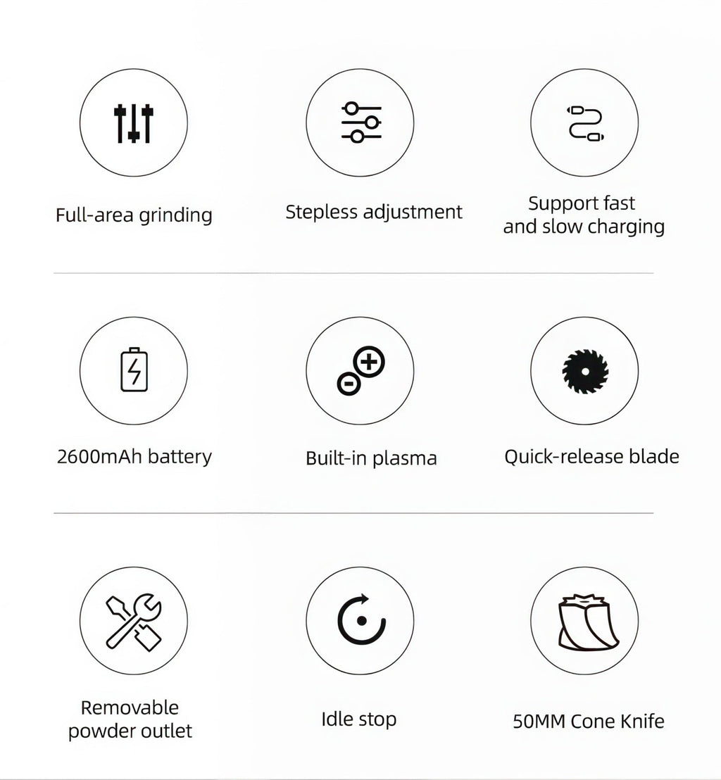 The 2600mAh battery provides approximately 60 minutes of continuous grinding on a full charge. For most single-dose sessions at around 18 grams, that translates to dozens of uses before you need to recharge. It also supports charge-while-use, so you can plug in and keep grinding if the battery runs low mid-session.