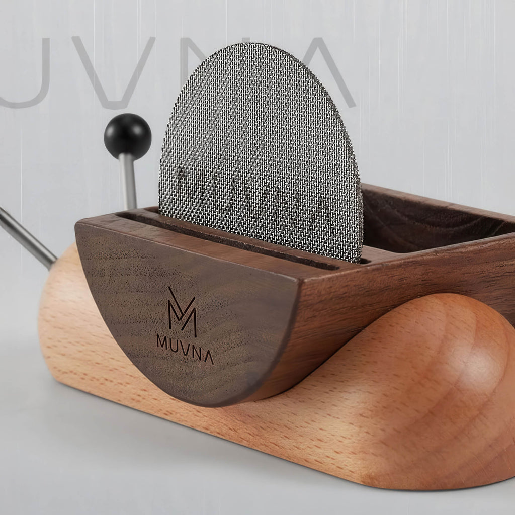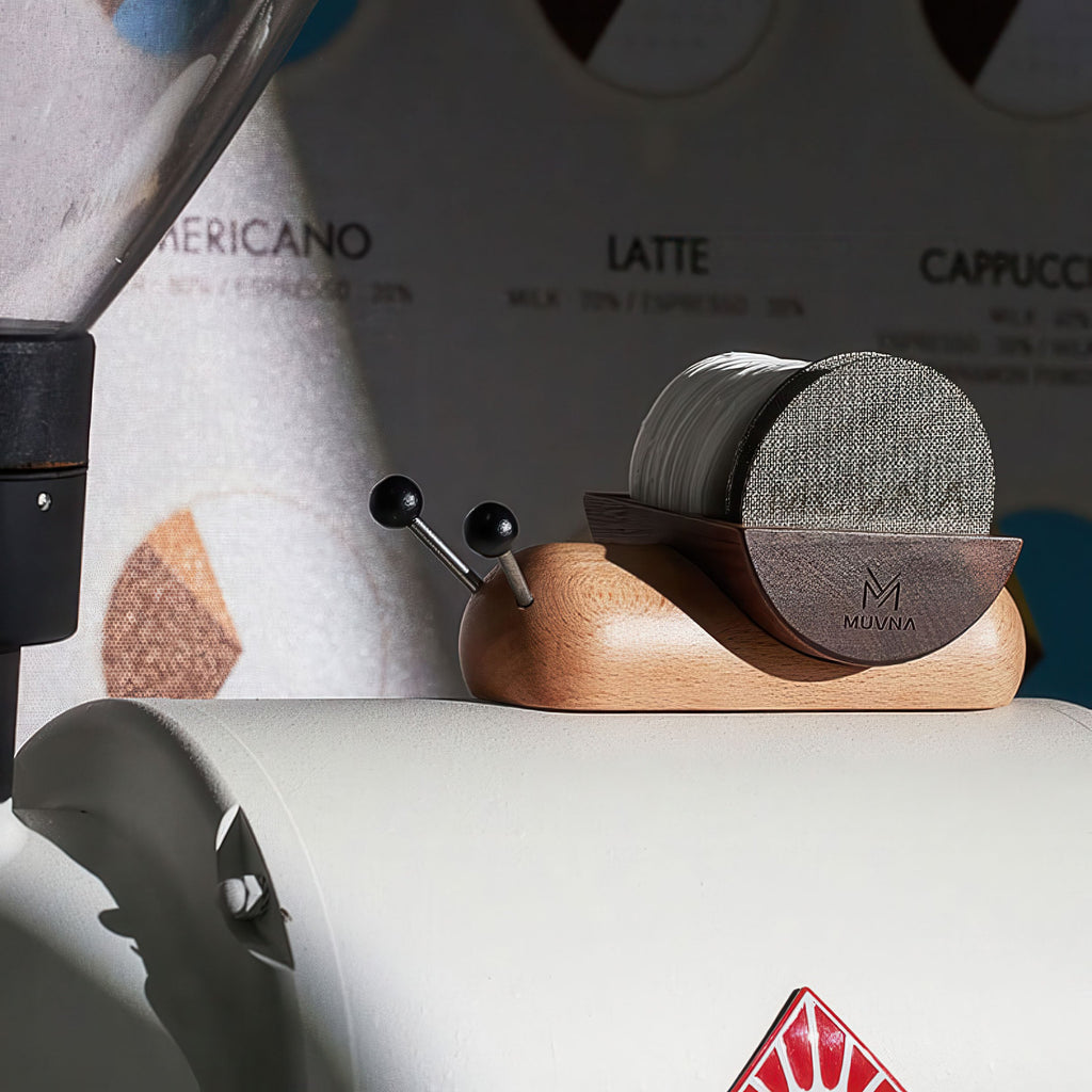 That is exactly where it belongs! The walnut and camphor wood blend offers excellent heat and corrosion resistance, so placing it right beside your machine is no problem at all. The rounded arc corners make it easy to grab a single filter paper quickly during your morning routine. It is built for real, everyday use, not just display.