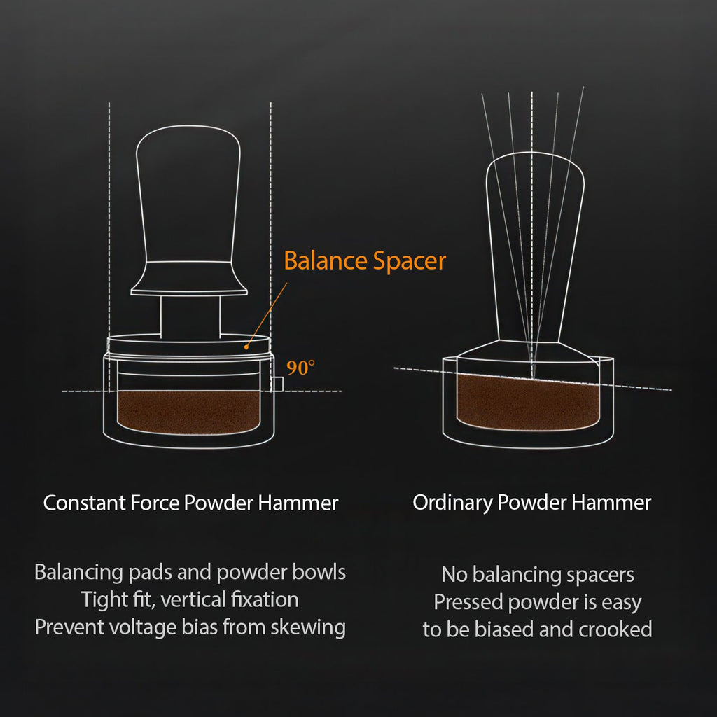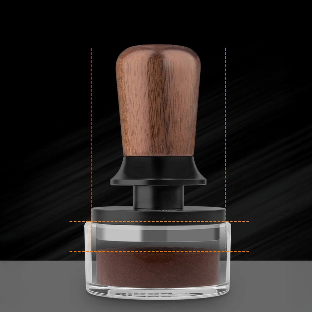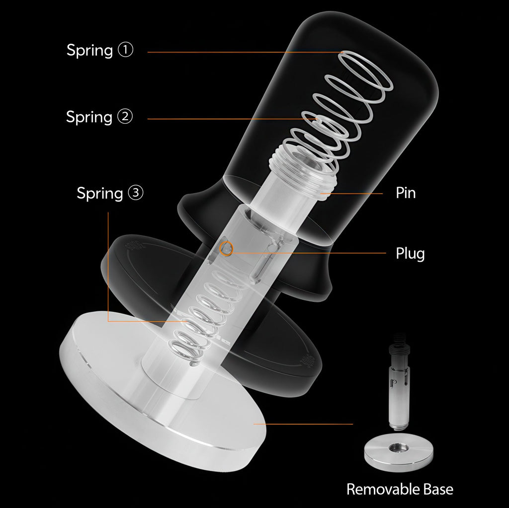 Great question! Inside the tamper, a patented tri-spring structure compresses as you push down. When exactly 30 pounds of force is reached, the mechanism unloads and produces a clear audible click along with a tactile sensation in your palm. This means every tamp hits the same consistent pressure without any manual adjustment or guesswork on your part.