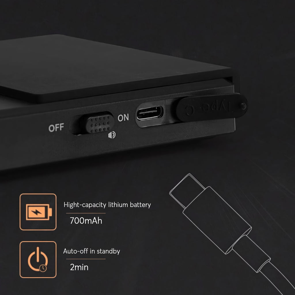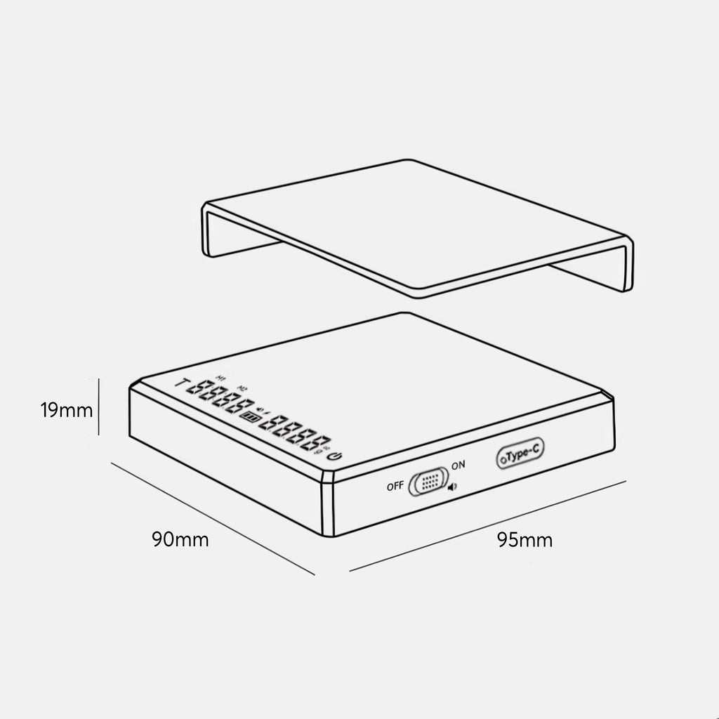 Charging is simple — just connect any USB Type-C cable to the port on the scale. The large-capacity internal battery holds a charge through many brew sessions before needing a top-up. For daily care, wipe the surface with a soft, dry cloth after each use. The silicone thermal pad protects the internals from heat and minor splashes, but avoid submerging the unit. Store it flat in a dry spot to keep the sensor calibrated and accurate.