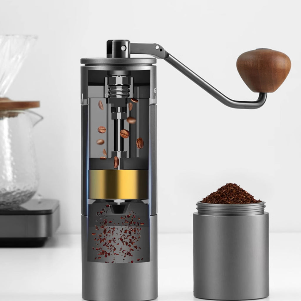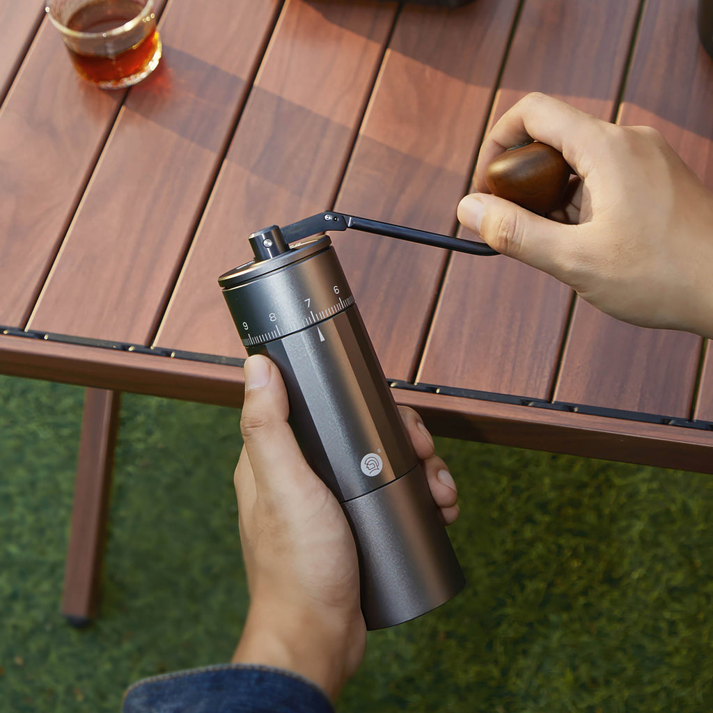 Very portable! The patented 180-degree folding handle collapses completely flush against the grinder body, making it remarkably compact. It slips easily into a travel bag, backpack, or even a large jacket pocket. If you brew on camping trips, at the office, or while traveling, this foldable design means you never have to compromise on grind quality away from home.